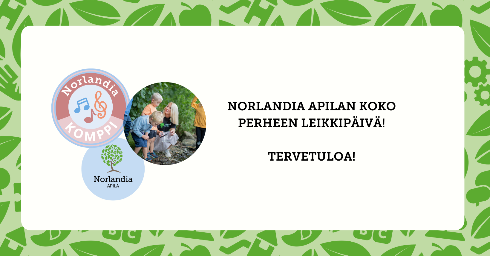 Tervetuloa viettämään koko perheen iloista leikkipäivää Norlandia Apilaan lauantaina 7.3.! Luvassa on toiminnallinen rata lapsille ja vaahtokarkkien paistelua nuotiolla. Samalla on mahdollisuus tutustua päiväkodin toimintaan.